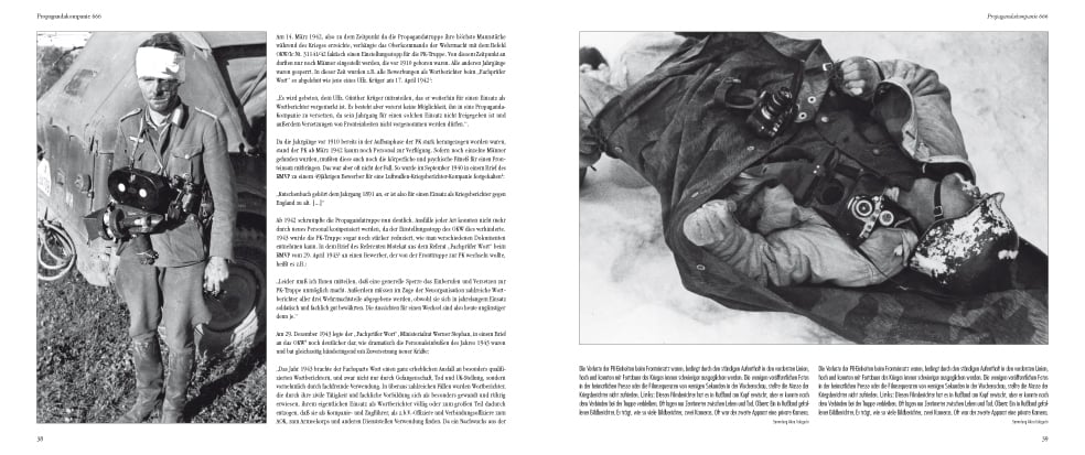 Das Kapitel Propaganda im Dritten Reich spielt in heutigen Diskussionen immer wieder eine große Rolle. Interessanterweise hat sich bisher kein Militärhistoriker ausführlich dem Thema gewidmet. Es gibt lediglich detaillierte Abhandlungen zu dem Thema der antisemitische Hetze und Propaganda. Aber wie sah die Propaganda für die Truppe und die deutsche Bevölkerung aus? Wie sahen die Vorgaben für die Kriegsberichter aus und was wurde davon umgesetzt? Wer zensierte die Ergebnisse und wie stellte sich die Zusammenarbeit zwischen Oberkommando der Wehrmacht und Ministerium für Volksaufklärung und Propaganda dar? Wer waren die Kriegsberichter und in wie weit waren sie an dem in den Kinos und den Zeitungen zu sehenden Endergebnissen überhaupt beteiligt? Was passierte, wenn nicht das geschrieben bzw. gefilmt oder fotografiert wurde, was gewünscht war? Gab es überhaupt Vorgaben? Wurden Kampfszenen nachgestellt? Wie riskant war der Job des Kriegsberichters und woher nahmen die Männer die Motivation, fortlaufend ihr Leben für Bilder und Berichte einzusetzen? Auf all diese Fragen geht das Buch ein und stellt fest, daß viele der von Nachkriegsautoren in die Welt gesetzten Behauptungen über die PK-Truppe überhaupt nicht den Tatsachen entsprechen.