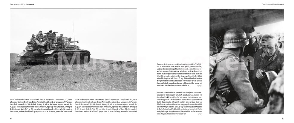 Bei den ca. 186 Fotos, davon 23 in Farbe handelt es sich ausschließlich um Einsatzaufnahmen von deutscher Seite und nicht um alliierte Nachkriegsfotos. Die Aufnahmen wurden mehrheitlich von deutschen Soldaten während der Endkämpfe gemacht und stellen somit einzigartige Bilddokumente aus einer Zeit dar, da kaum noch Filmmaterial zu bekommen war und auch nur noch selten fotografiert wurde. Die schwarz/weiß-Fotos werden durch drei seltene Farbaufnahmen ergänzt, die ebenfalls während der Kämpfe entstanden. Das Bildmaterial, das durch umfangreiche und detaillierte Texte und Karten ergänzt wird, ist in bestmöglicher Qualität auf hochwertigem Kunstdruckpapier gedruckt.